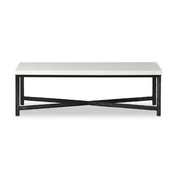 Hammered Iron Coffee Table - White Marbl...